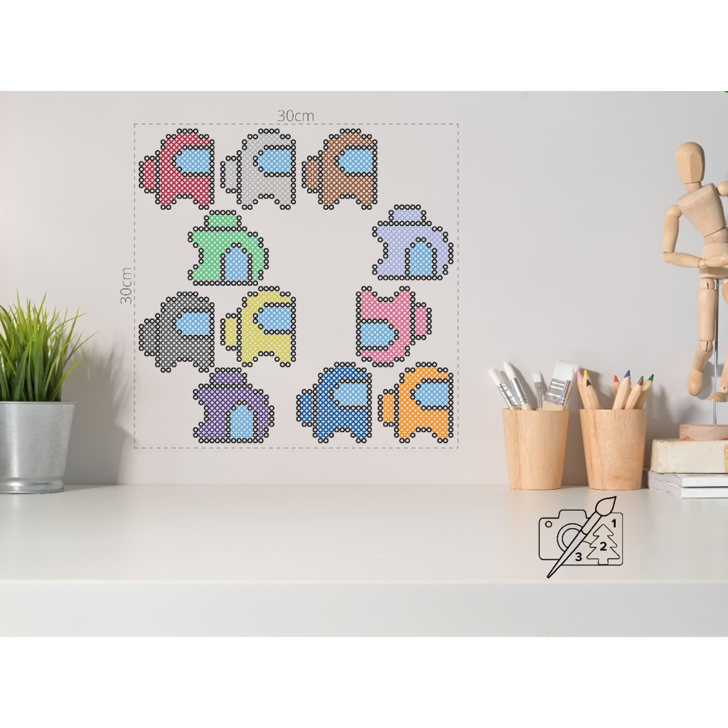 Z našo različico vam ni več treba iskati motivov po internetu, ki bi jih lahko kopirali na oko! Naše natančne predloge, ki jih izrežete in položite pod plošče, olajšajo celotno nalogo. Predloga vsebuje simbole in številke, ki jasno kažejo, katere kroglice kam sodijo. Z uporabo predloge s celotnim vzorcem lahko enostavno in hitro ustvarite brezhiben rezultat! Ste pripravljeni na novo ustvarjalno potovanje z uporabo fuse kroglice?