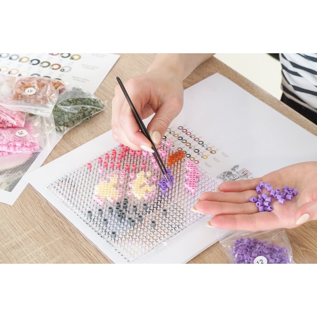Po oddaji naročila boste po pošti prejeli pegboard plošče, na katere boste s pinceto razporedili plastične kroglice v obliki cevk. Živahna šablona s simboli vam bo pomagala pravilno razporediti kroglice določene barve. Ko boste končali z vsemi deli slike, jih pritrdite z maskirnim trakom in jih likajte, dokler se ne spojijo v eno čudovito mojstrovino.