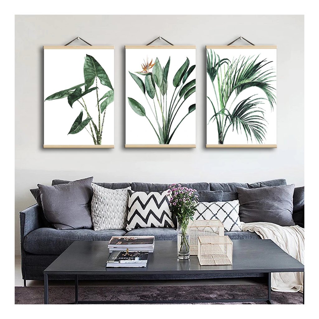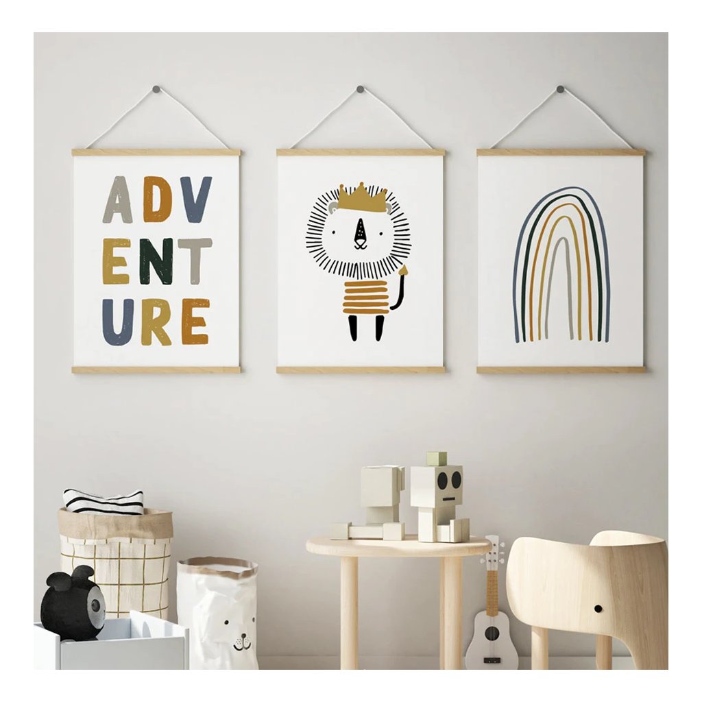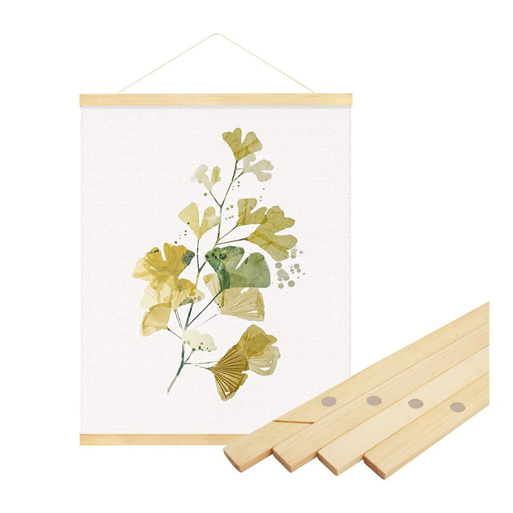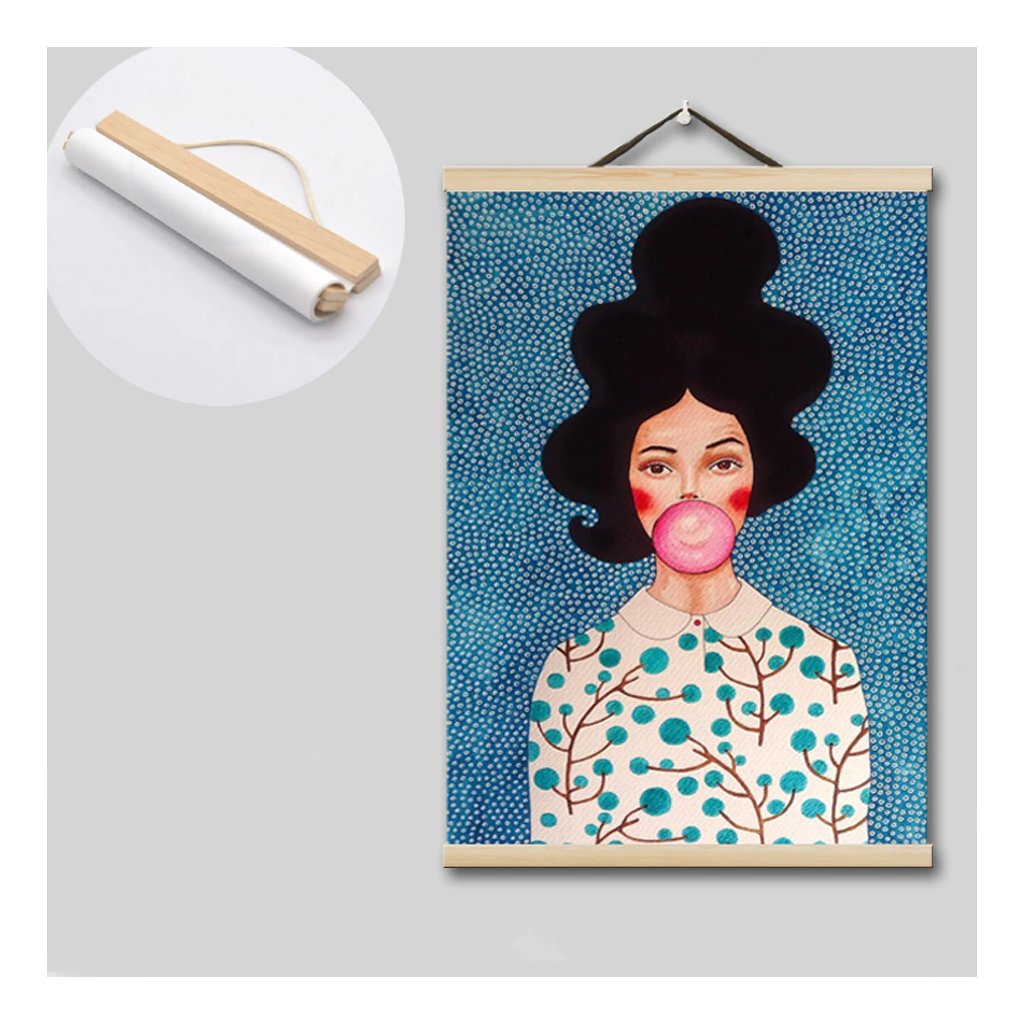 Instructions: strong magnets hold the wooden strips together, so all you need to do is secure the canvas between them. The upper strips come with a leather cord, which makes hanging your picture a piece of cake.