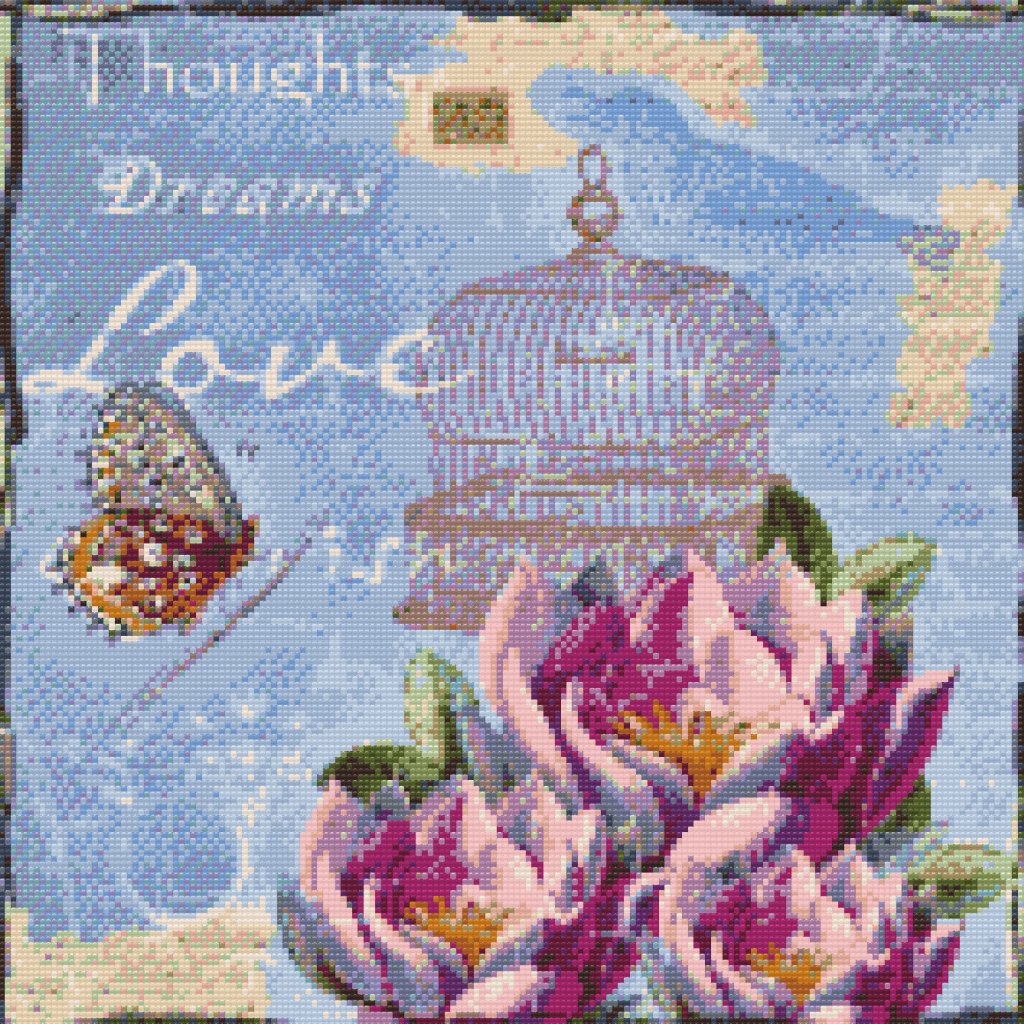 Diamanti - Vsak označen paket diamantov ustreza tistim na platnu. Diamanti so veliki približno 2,8 mm – precej majhni – in končno umetniško delo bo vsebovalo na stotine diamantov. Po tem skrbnem delu boste imeli bleščeče mojstrovino!