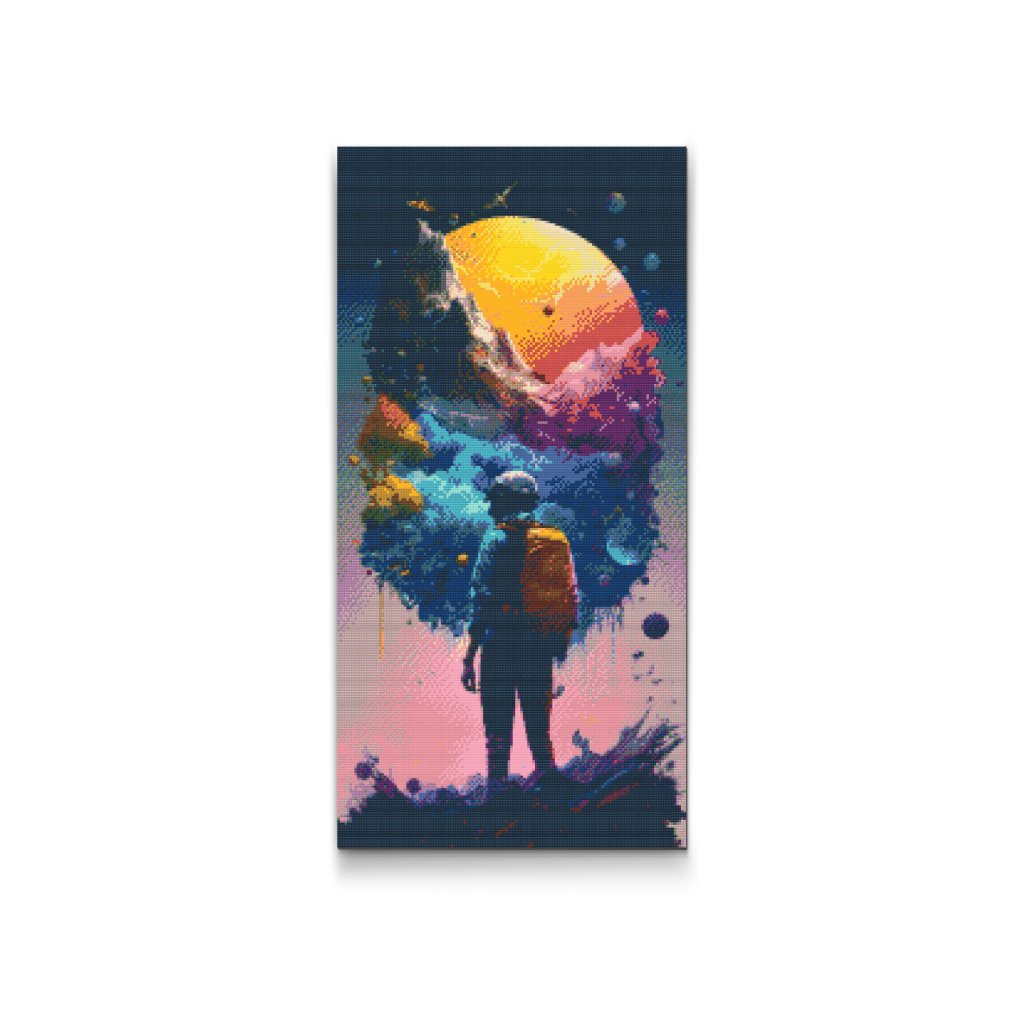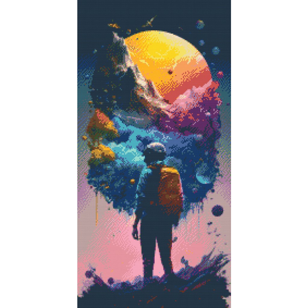 Postopek je preprost: v kompletu je platno z lepilom in šablono, na katerega nalepite označene diamante tako, da jih ujemate z ustreznimi simboli na platnu. Diamantno pero vam bo prišlo prav, saj lahko hkrati drži do tri diamante; lepljiva podlaga, podobna slikarski paleti, pa vam bo pomagala, da ne izgubite dragocenih diamantov!