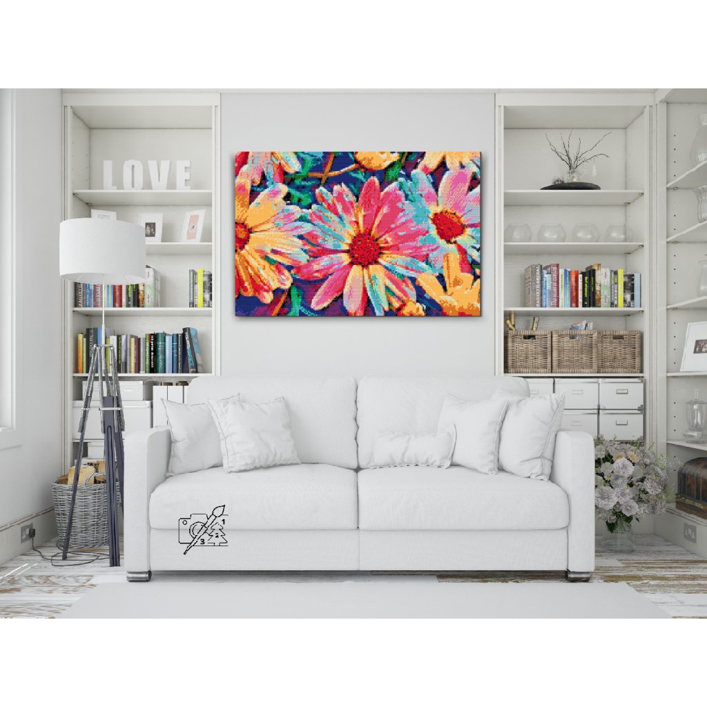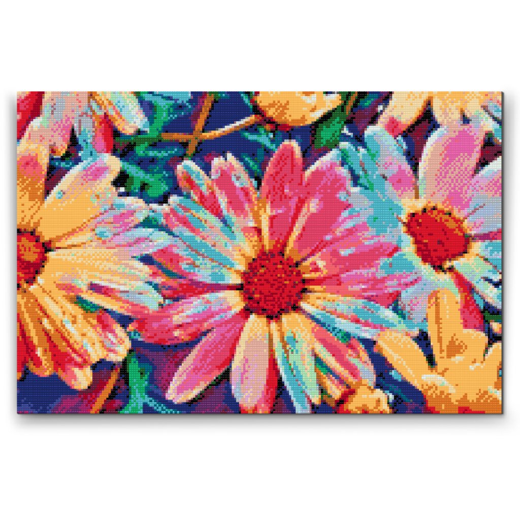 Postopek je preprost: v kompletu je platno z lepilom in šablono, na katerega nalepite označene diamante tako, da jih ujemate z ustreznimi simboli na platnu. Diamantno pero vam bo prišlo prav, saj lahko hkrati drži do tri diamante; lepljiva podlaga, podobna slikarski paleti, pa vam bo pomagala, da ne izgubite dragocenih diamantov!