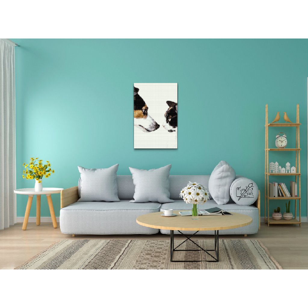 Postopek je preprost: v kompletu je platno z lepilom in šablono, na katerega nalepite označene diamante tako, da jih ujemate z ustreznimi simboli na platnu. Diamantno pero vam bo prišlo prav, saj lahko hkrati drži do tri diamante; lepljiva podlaga, podobna slikarski paleti, pa vam bo pomagala, da ne izgubite dragocenih diamantov!