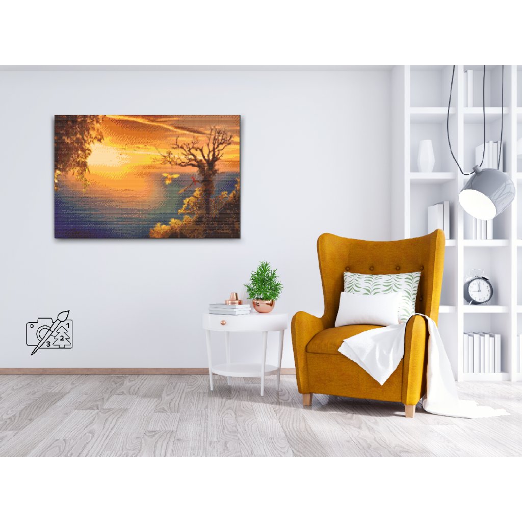 Slikanje z diamanti - Sončni zahod nad oceanom in papige