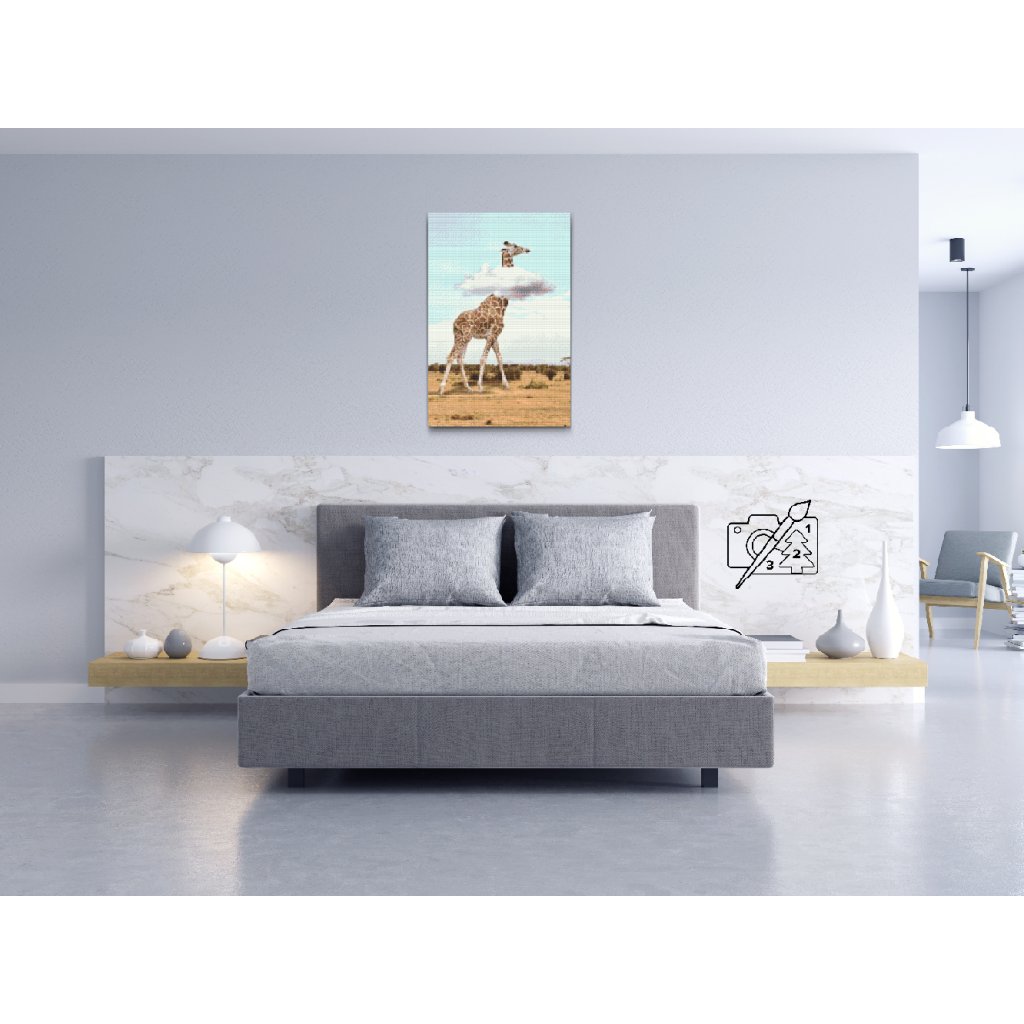 Slikanje z diamanti - Žirafa z glavo v oblakih