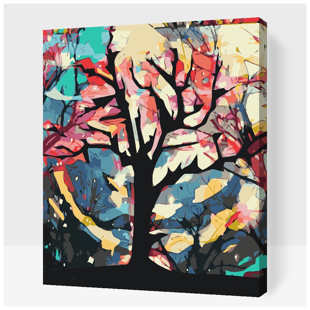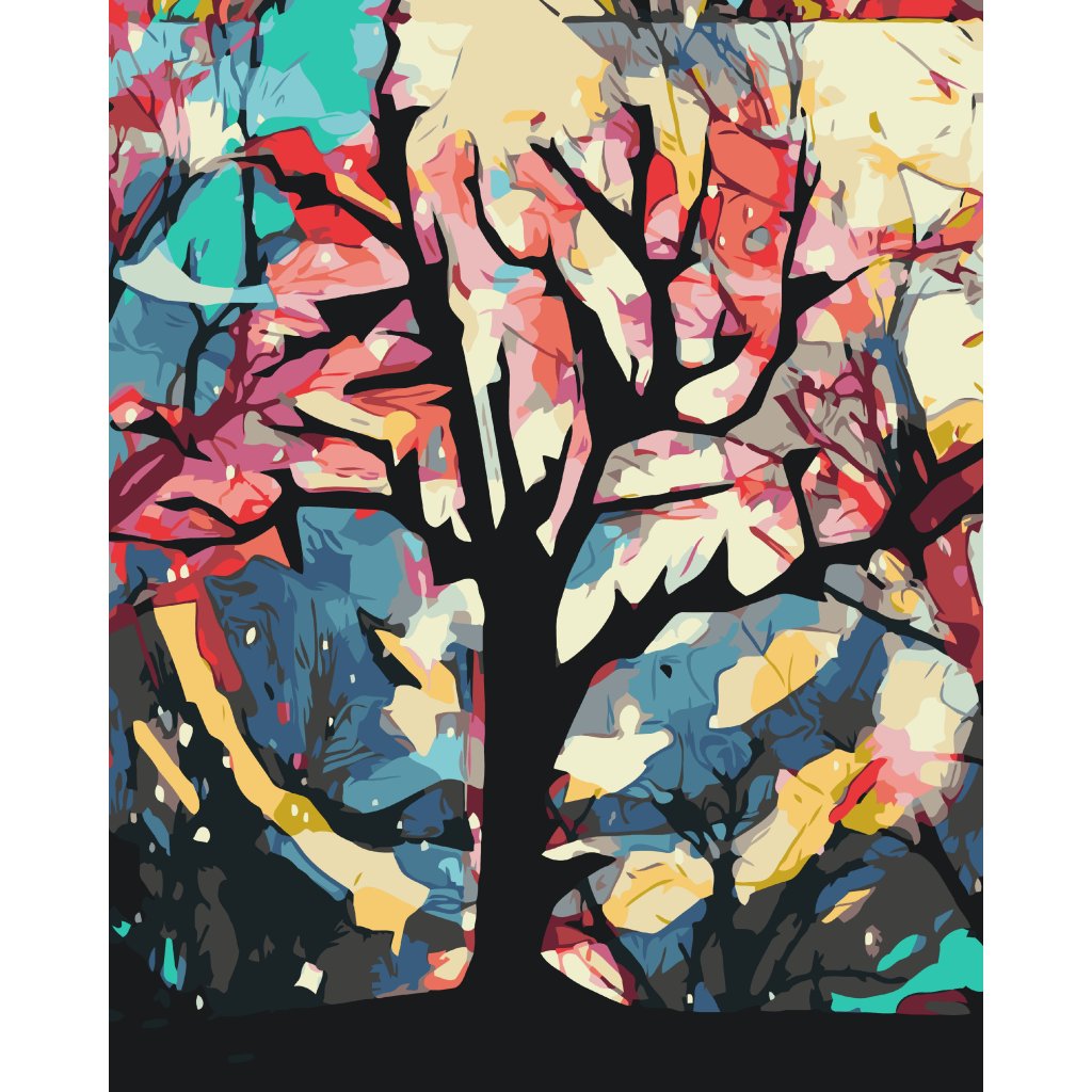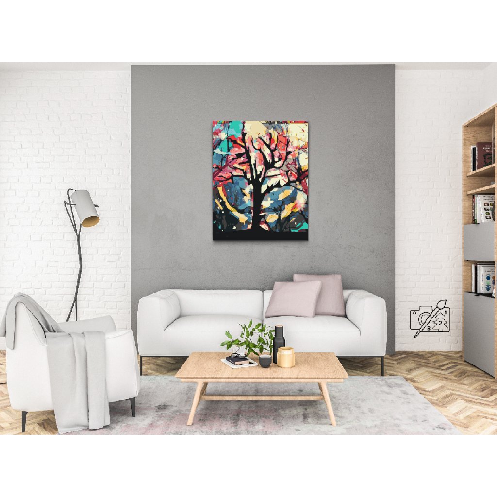 Slikarstvo po številkah - Barvito ozadje za drevesom
