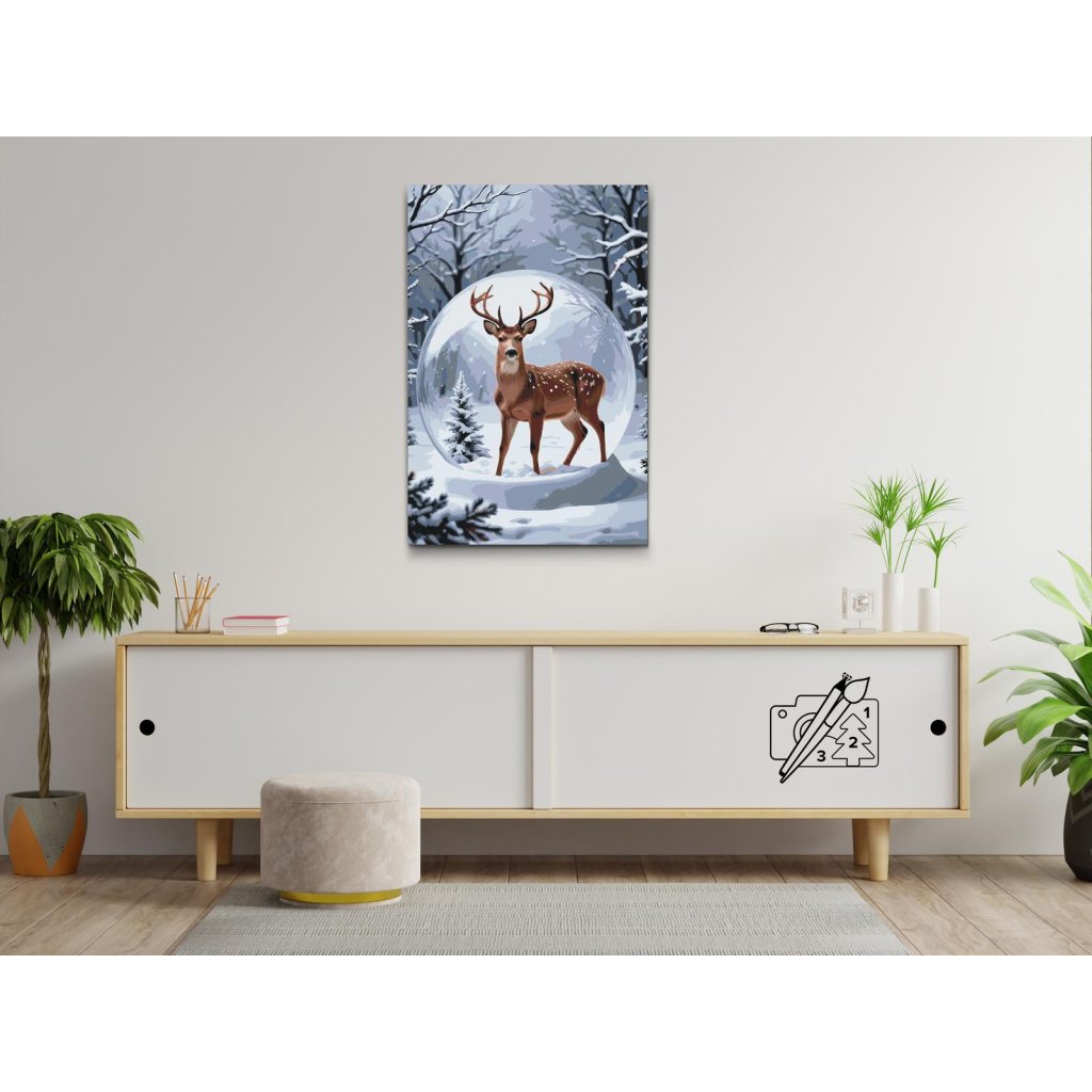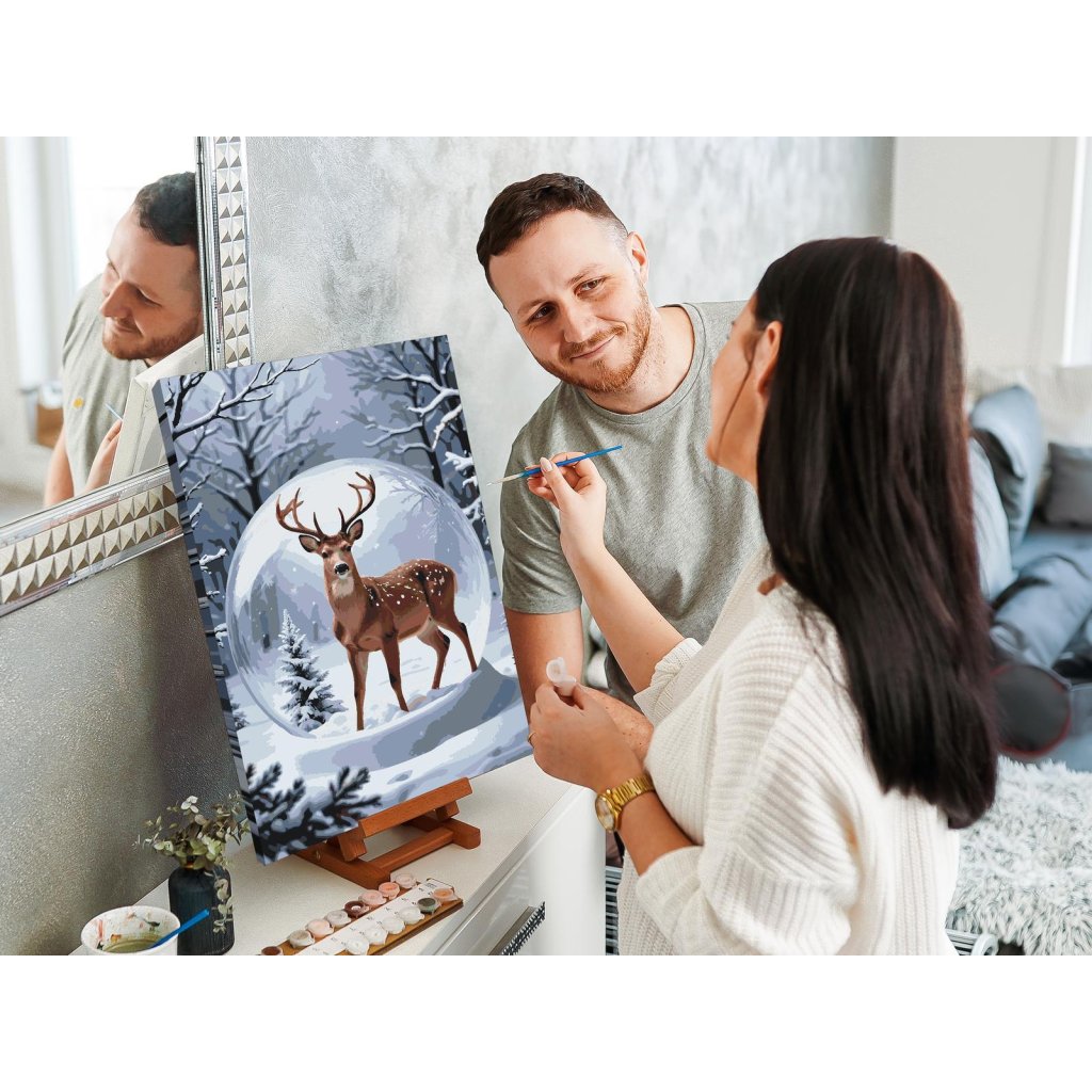 Slikarstvo po številkah - Jelen v snežni kroglici