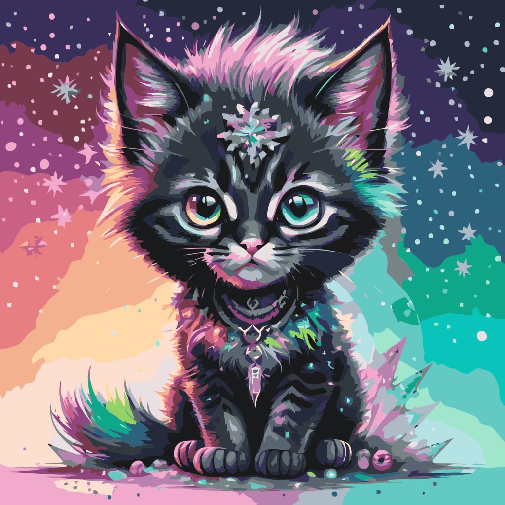 Slikarstvo po številkah - Mavrično črno mačje mladiče