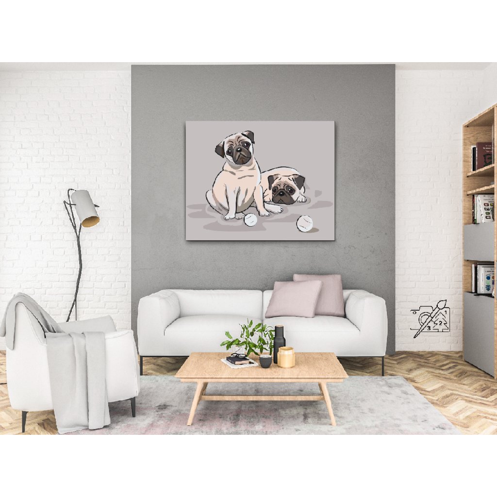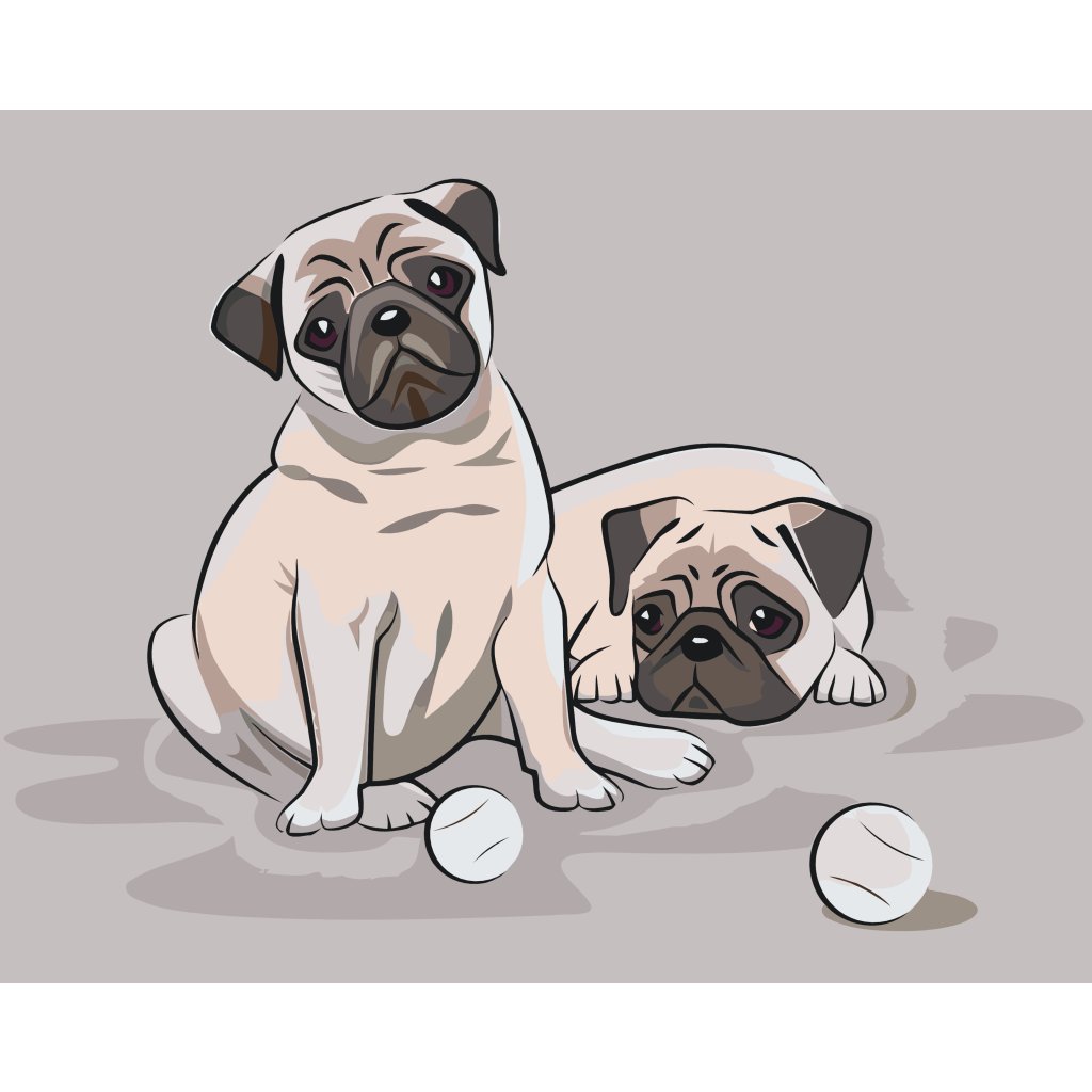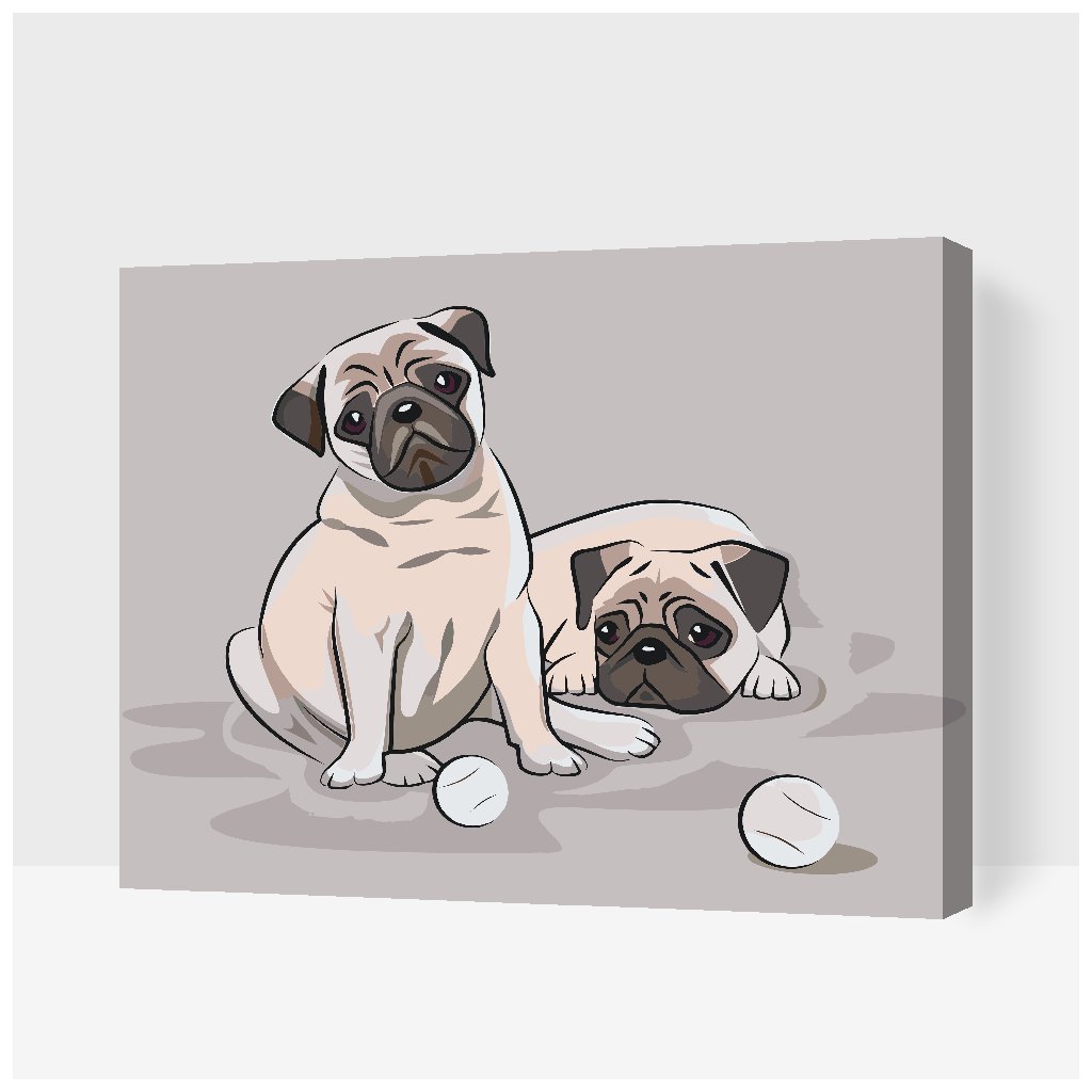 Slikarstvo po številkah - Mopsi z majhnimi žogicami