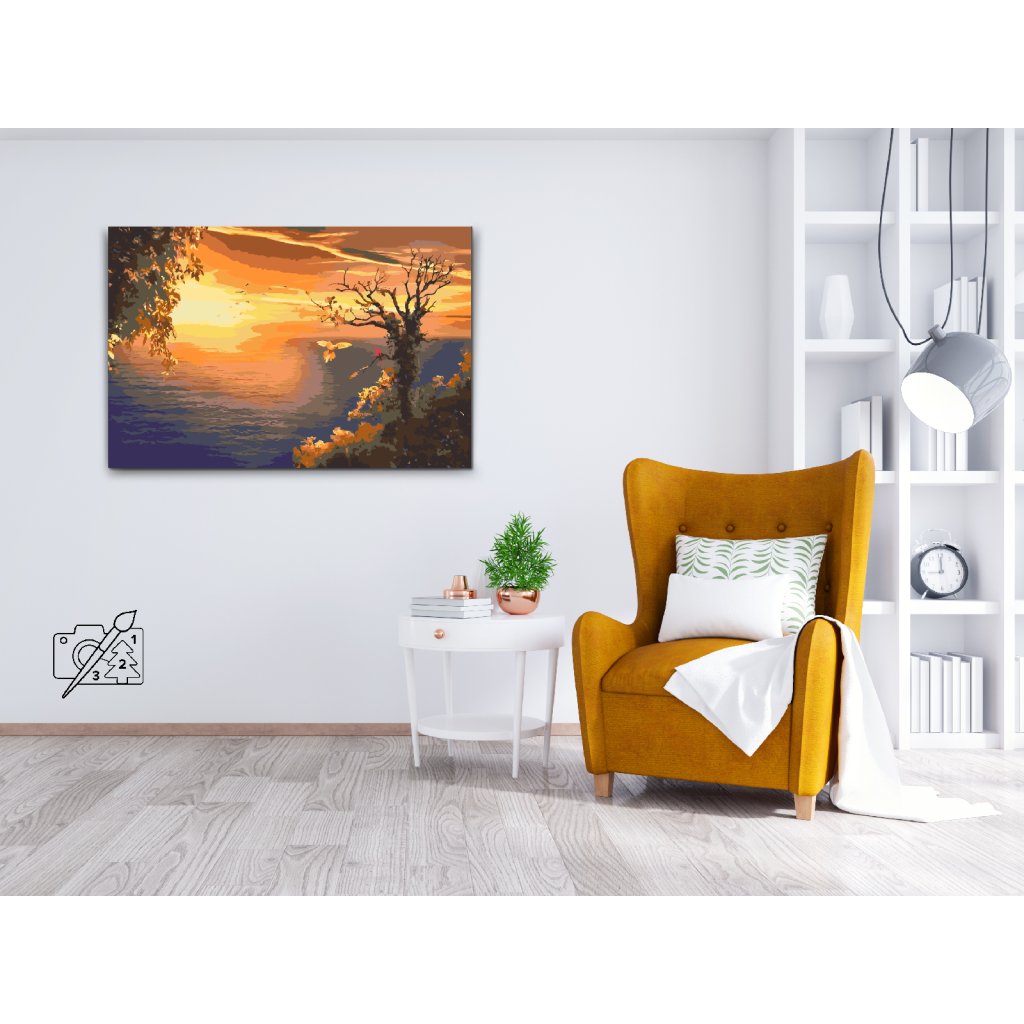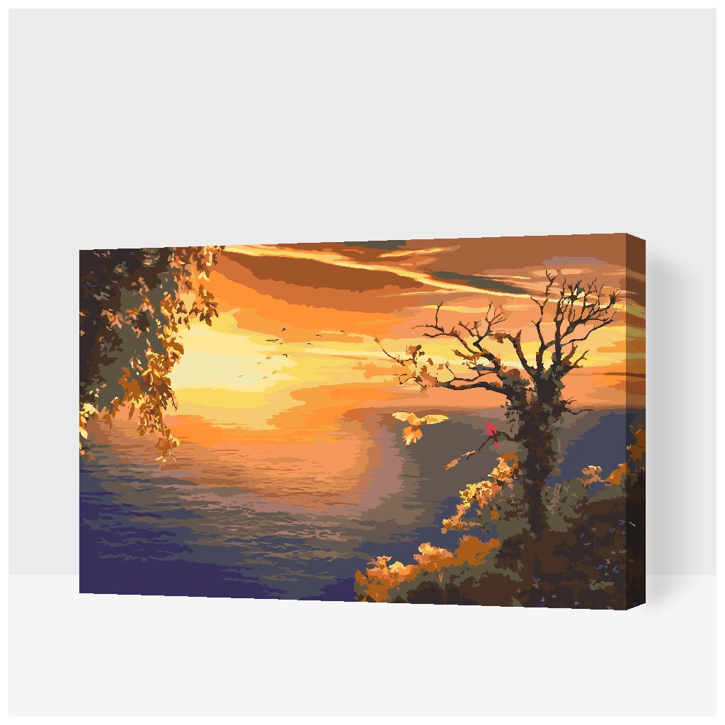Slikarstvo po številkah - Sončni zahod nad oceanom in papige