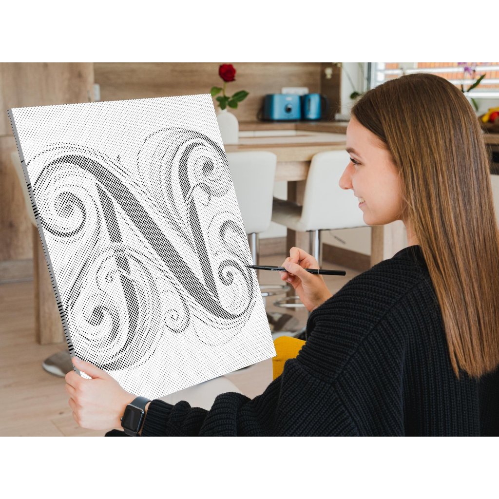 Ustvarite svojo novo umetniško sliko s pikami! Izberite flomaster v svoji najljubši barvi in po lastni presoji narišite pike na vnaprej natisnjeno platno. Če izberete okvirjeno različico, jo lahko takoj obesite na steno. Kljub temu, da nimate nobenih izkušenj s slikanjem, je impresivna umetniška vrednost končne slike zagotovljena. Pika za piko vas bo pripeljala do čudovitega umetniškega dela.