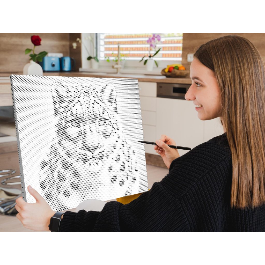 Ustvarite svojo novo umetniško sliko s pikami! Izberite flomaster v svoji najljubši barvi in po lastni presoji narišite pike na vnaprej natisnjeno platno. Če izberete okvirjeno različico, jo lahko takoj obesite na steno. Kljub temu, da nimate nobenih izkušenj s slikanjem, je impresivna umetniška vrednost končne slike zagotovljena. Pika za piko vas bo pripeljala do čudovitega umetniškega dela.